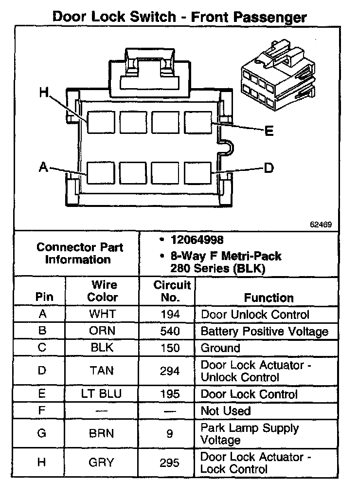 Door Lock Switch - Front Passenger: