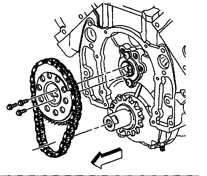 ^ The sprocket teeth must mesh with the timing chain in order to prevent damage to the camshaft retainer.
