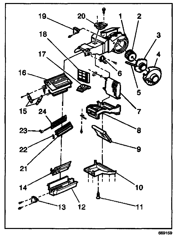 8. Remove the clips holding the air distribution case to the heater case.