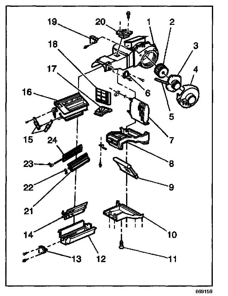 2. Install the clips holding the air distribution case to the heater case.