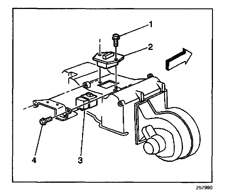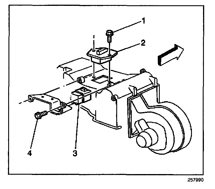 4. Remove the blower motor resistor (2).