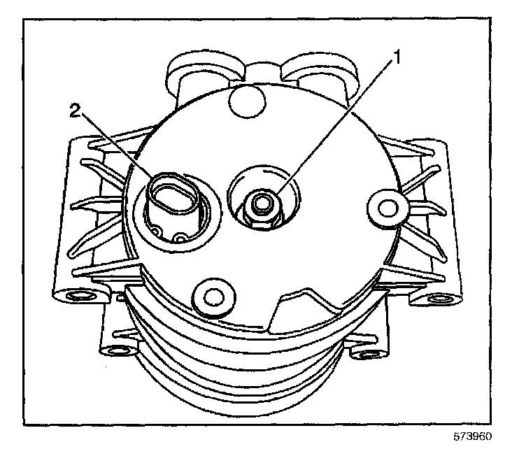 2. Disconnect the electrical connector from the switch (2) in the rear head of the compressor.
