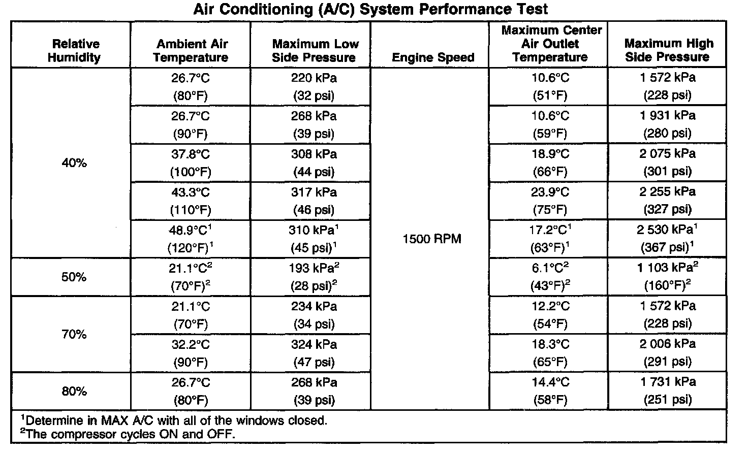 Air Conditioning (A/C) System Performance Test: