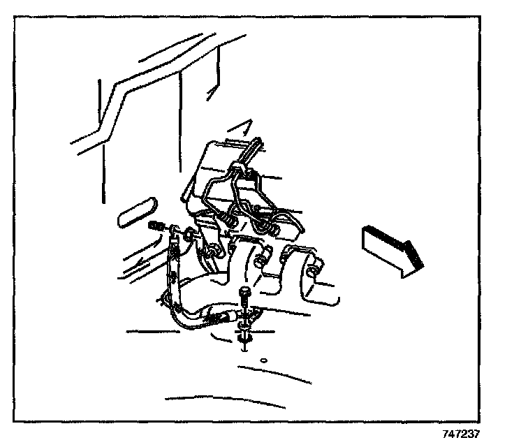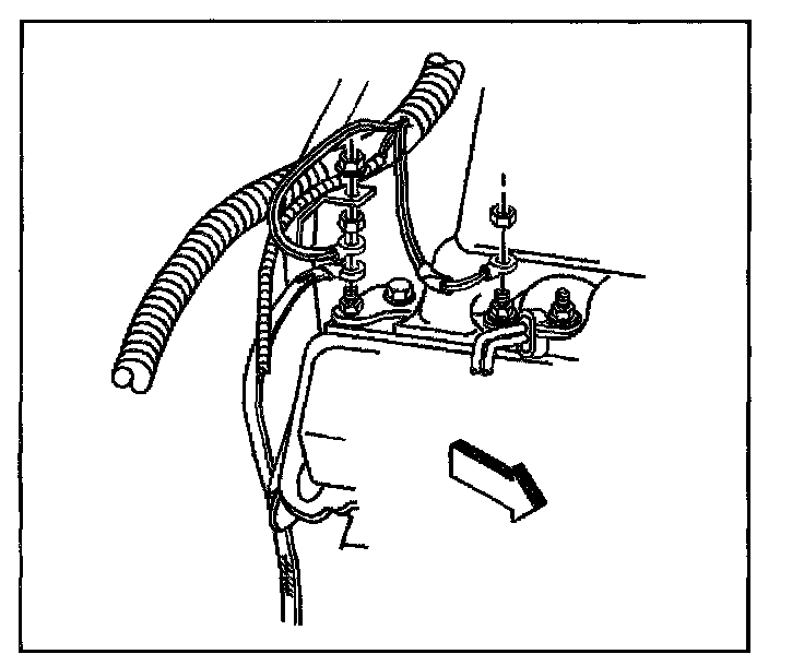 9. Install the ground strap bolt at the passenger side frame rail.