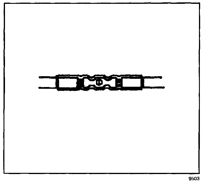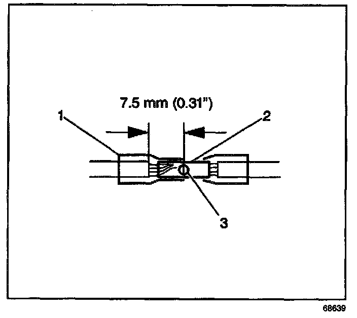 6. Place the splice sleeve in the nest. Ensure that the crimp falls midway between the end of the barrel and the stop. The sleeve has a stop (3) in the middle of the barrel (2) in order to prevent the wire (1) from going further. Close the hand crimper handles slightly in order to firmly hold the splice sleeve in the proper nest.