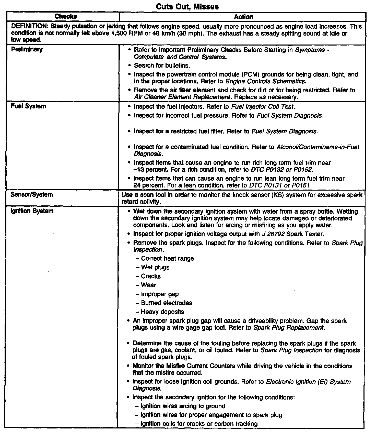 Cuts Out, Misses