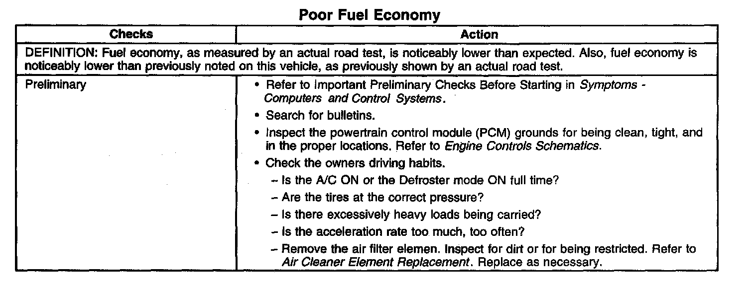 Poor Fuel Economy