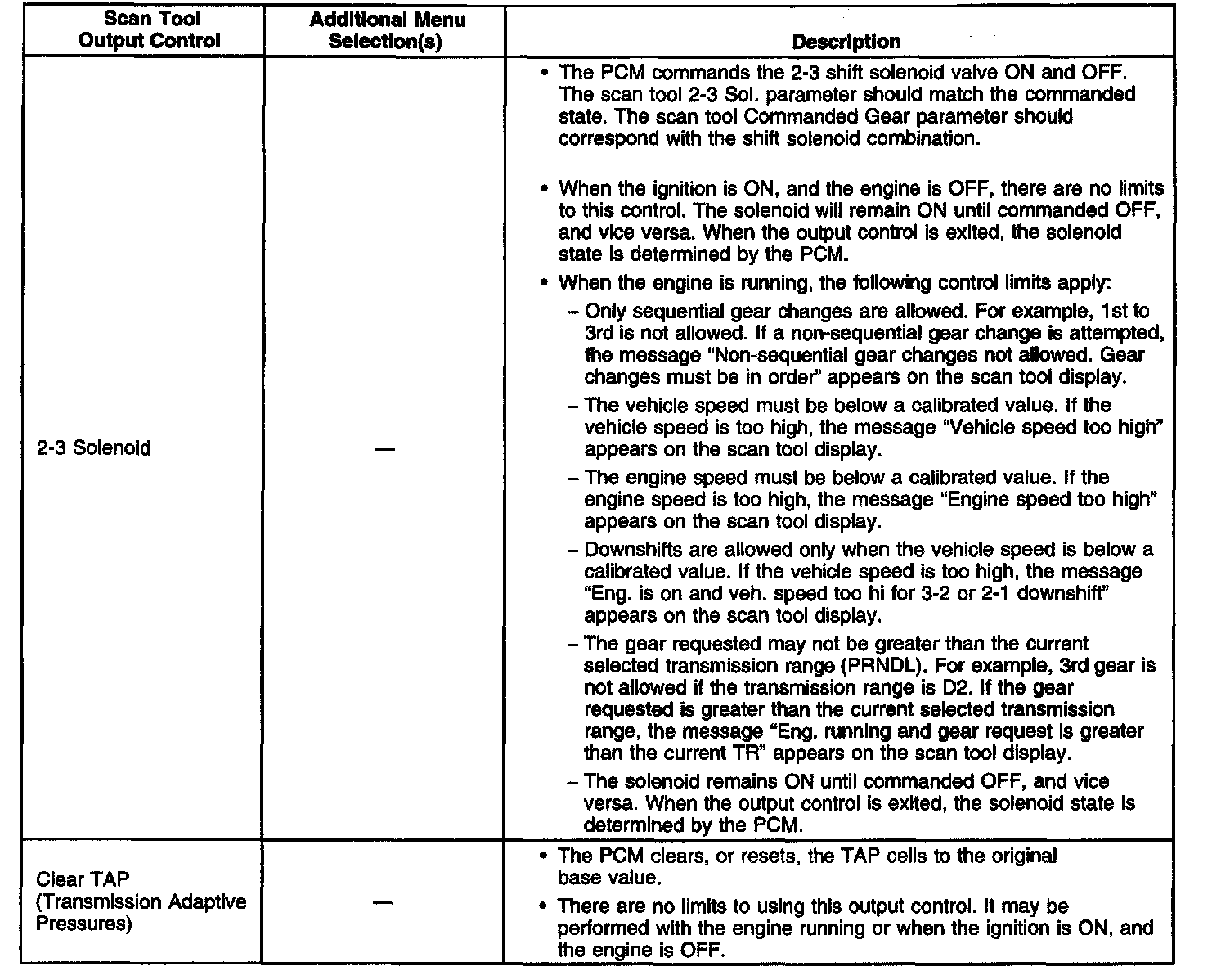 Scan Tool Output Controls