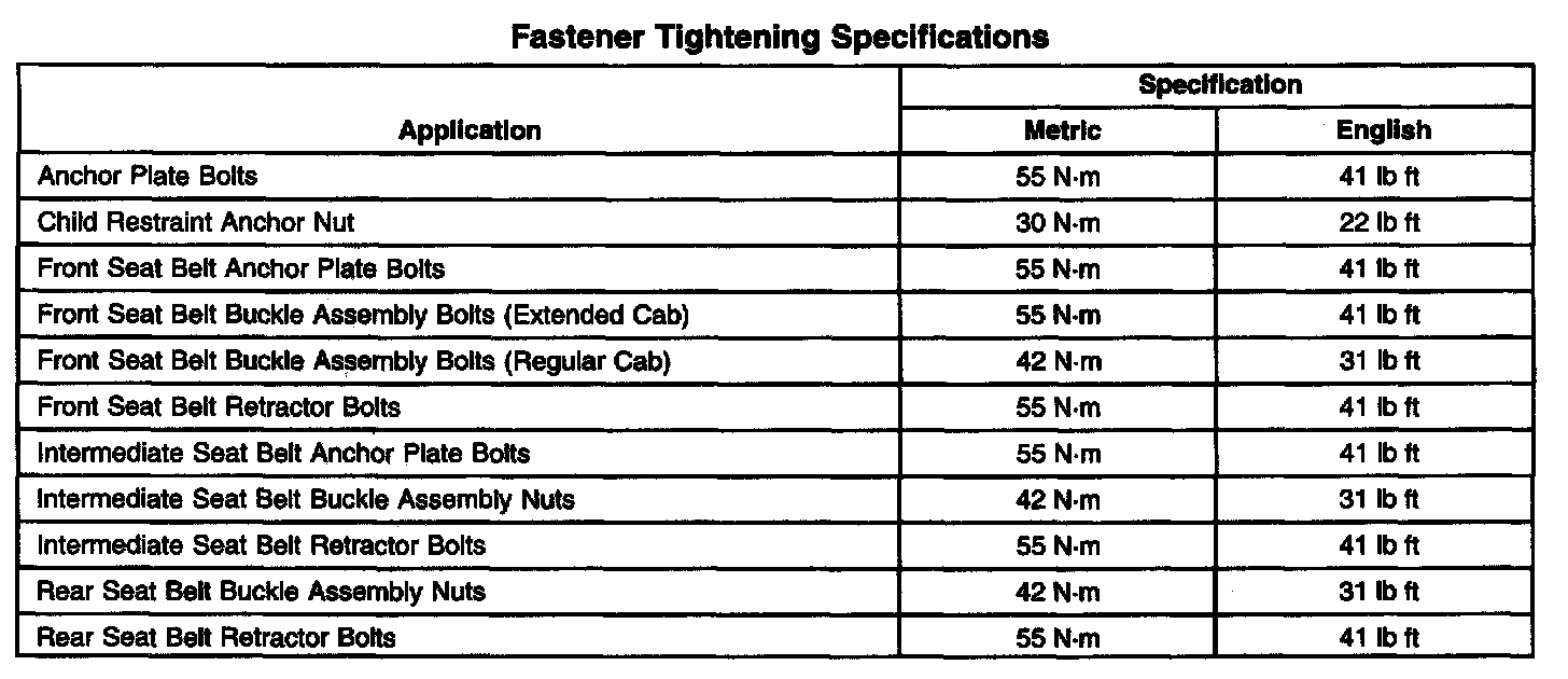Fastener Tightening Specifications:
