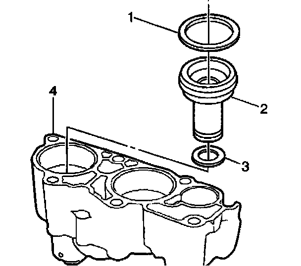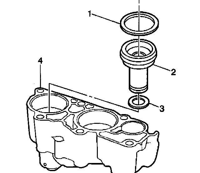 1. Install the 3rd clutch accumulator piston inner (3) and outer (1) seals. Lubricate the 3rd clutch accumulator piston seals (1, 3) with DEXRON III automatic transmission fluid.