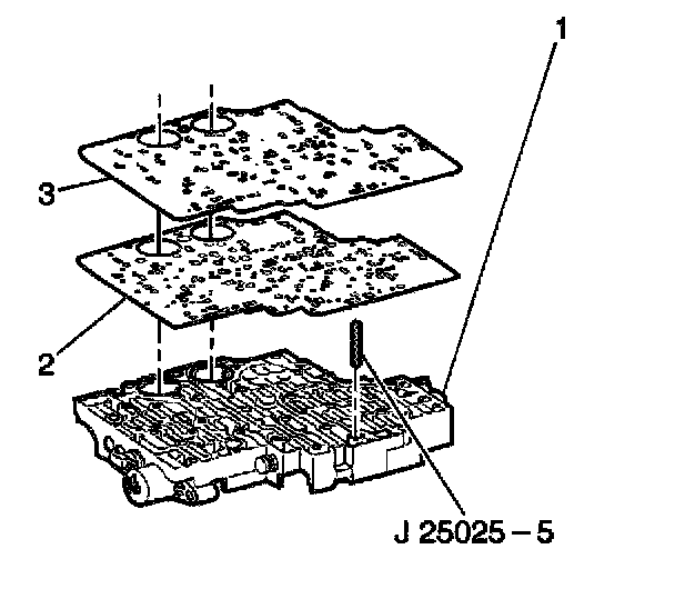 3. Install the control valve body spacer plate (3) onto the valve body gasket (2).