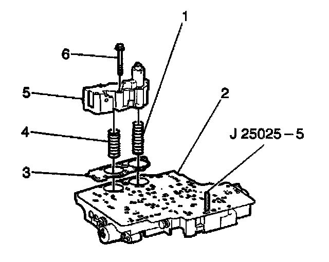 8. Remove the control valve body spacer plate (5).