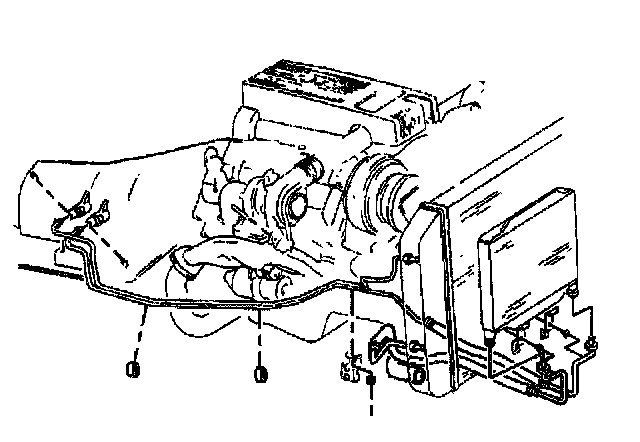 3. For vehicles with the Turbo Diesel, remove the retainer clips and brackets that secure the transmission cooler lines to, the engine.