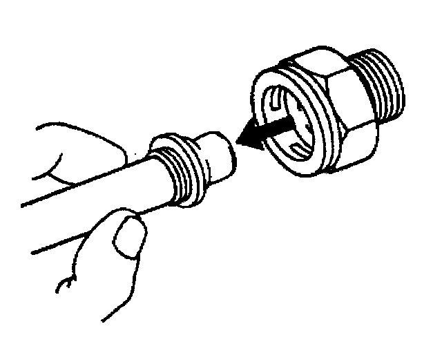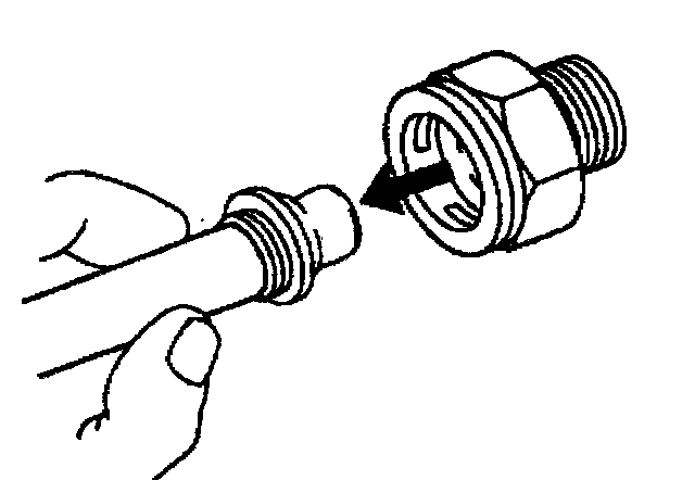 11. Do not use the plastic cap on the cooler line in order to install the cooler line into the fitting.