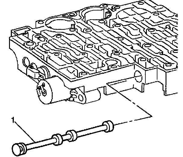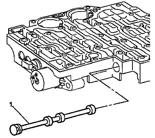 22. Remove the manual 2-1 band servo piston pin (1).