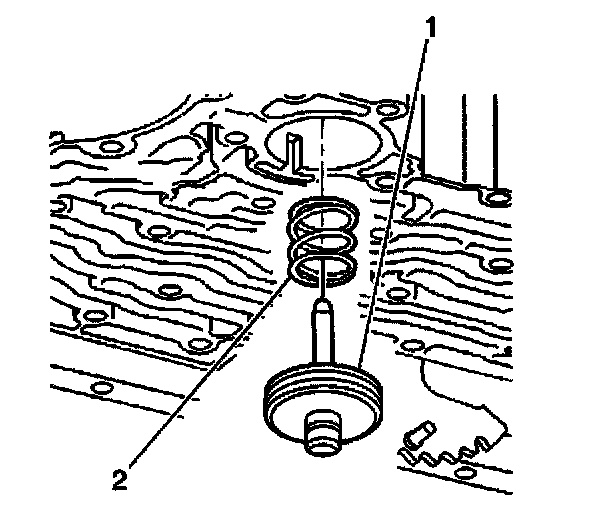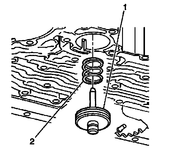 6. Install the manual 2-1 band servo piston cushion spring (2).