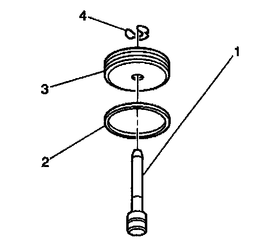 3. Install a new manual 2-1 band servo piston seal (2) onto the manual 2-1 band servo piston (3).