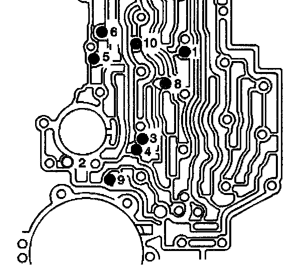 - The torque converter clutch pulse width modulation (TCC PWM) solenoid (7)