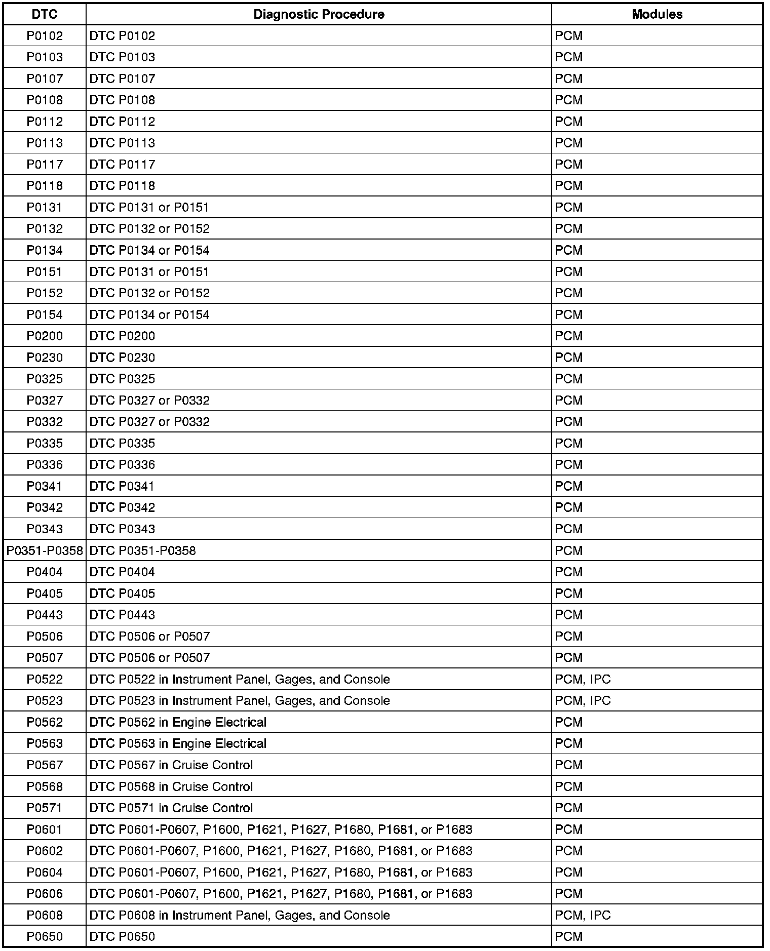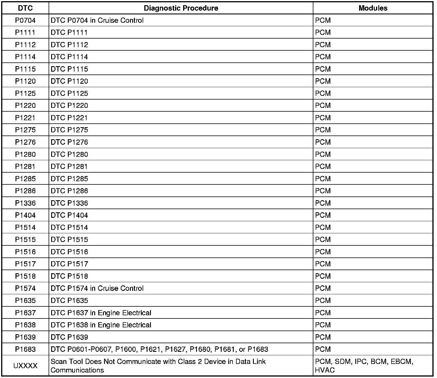 Diagnostic Trouble Code (DTC) List