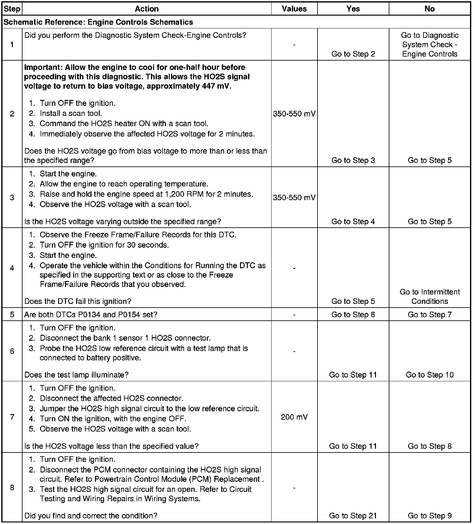 2. After the HO2S heater is commanded ON, the HO2S heater heats up causing the HO2S signal voltage to either increase or decrease. This indicates that the HO2S heater is OK.