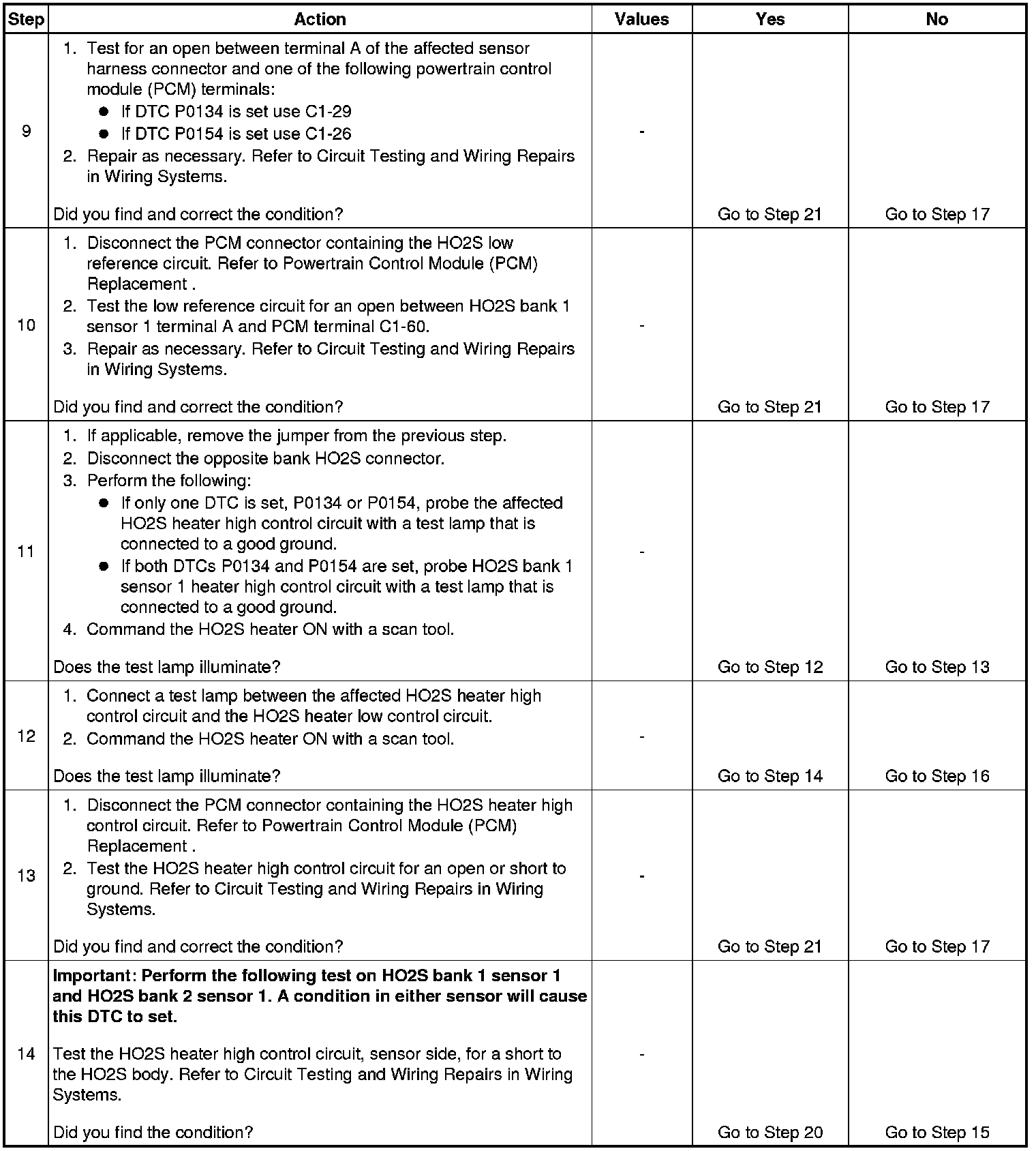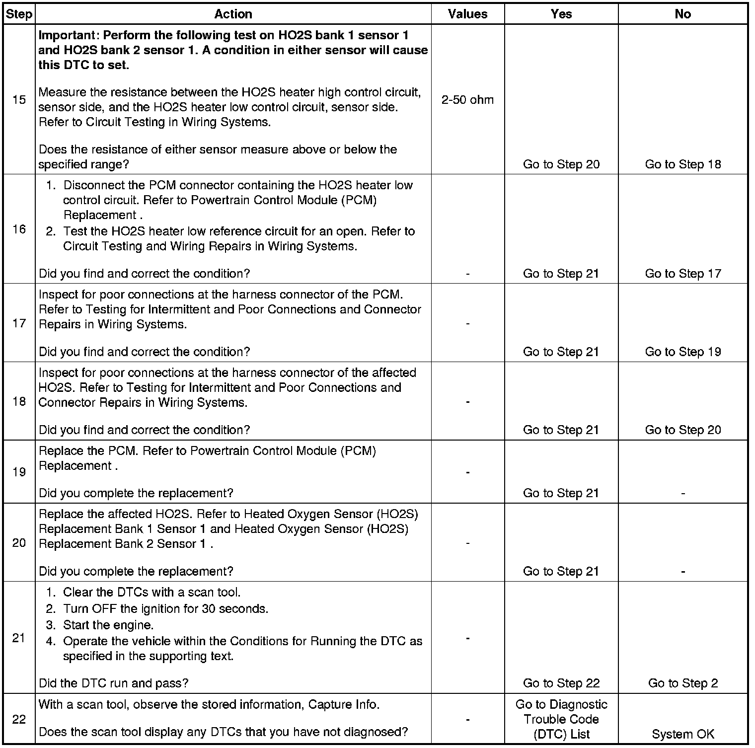 15. Resistance within the specified range indicates the HO2S heater is OK.
