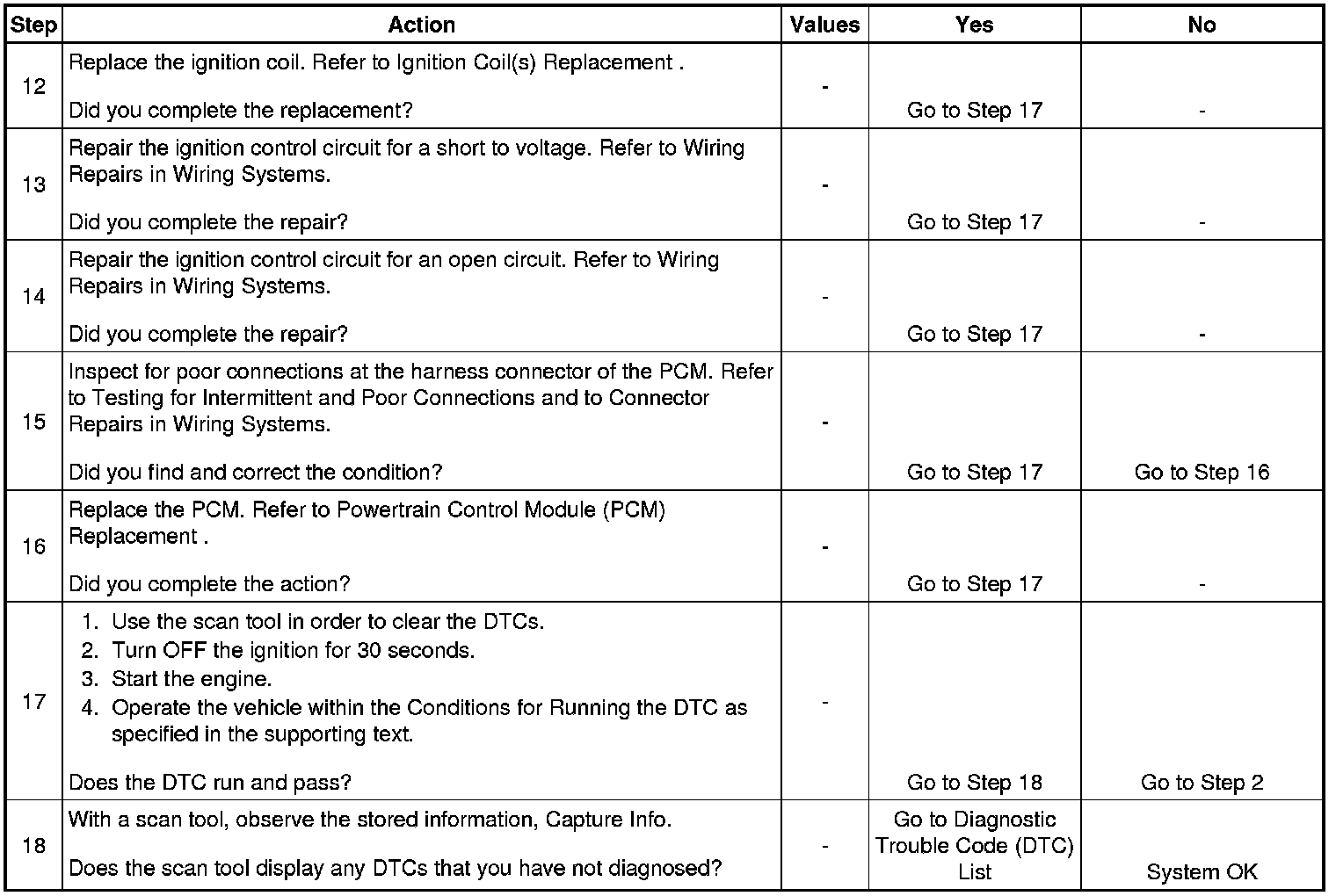The PCM detects the ignition control circuit is grounded, open, or shorted to voltage for less than 1.0 second.