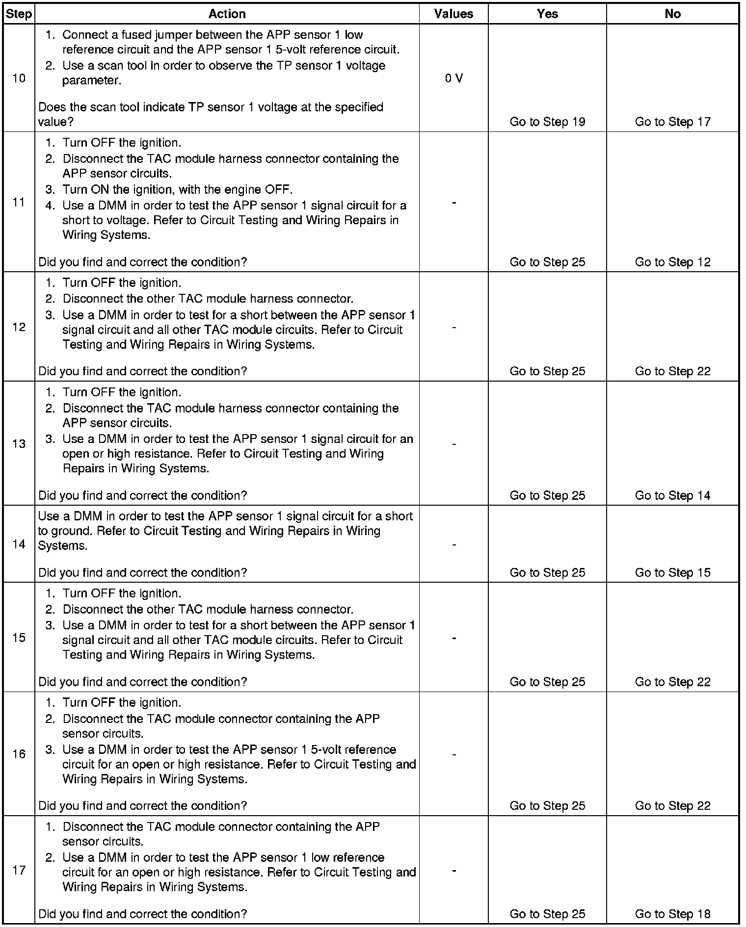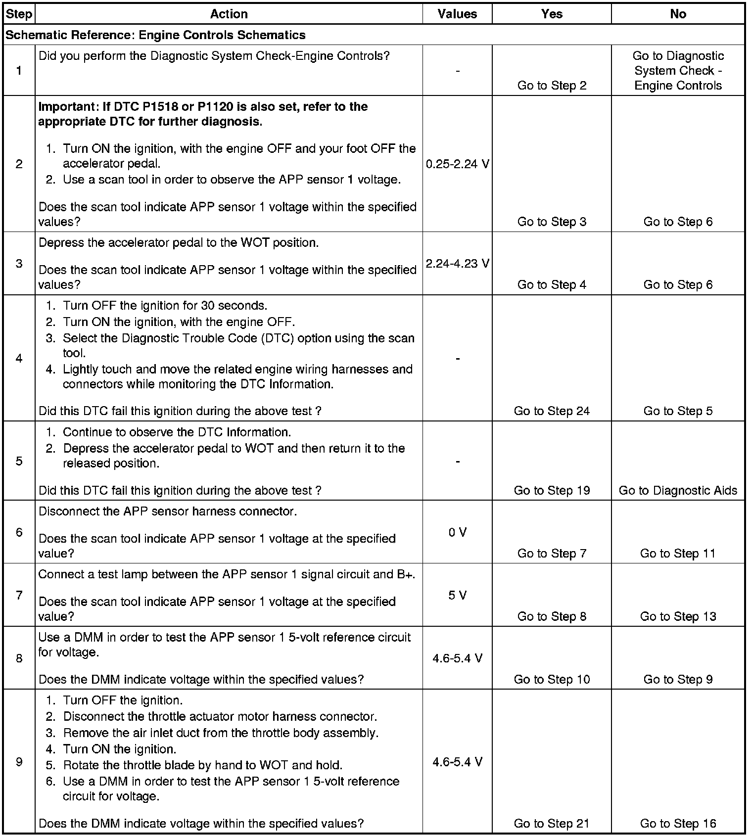 The numbers below refer to the step numbers on the diagnostic table.