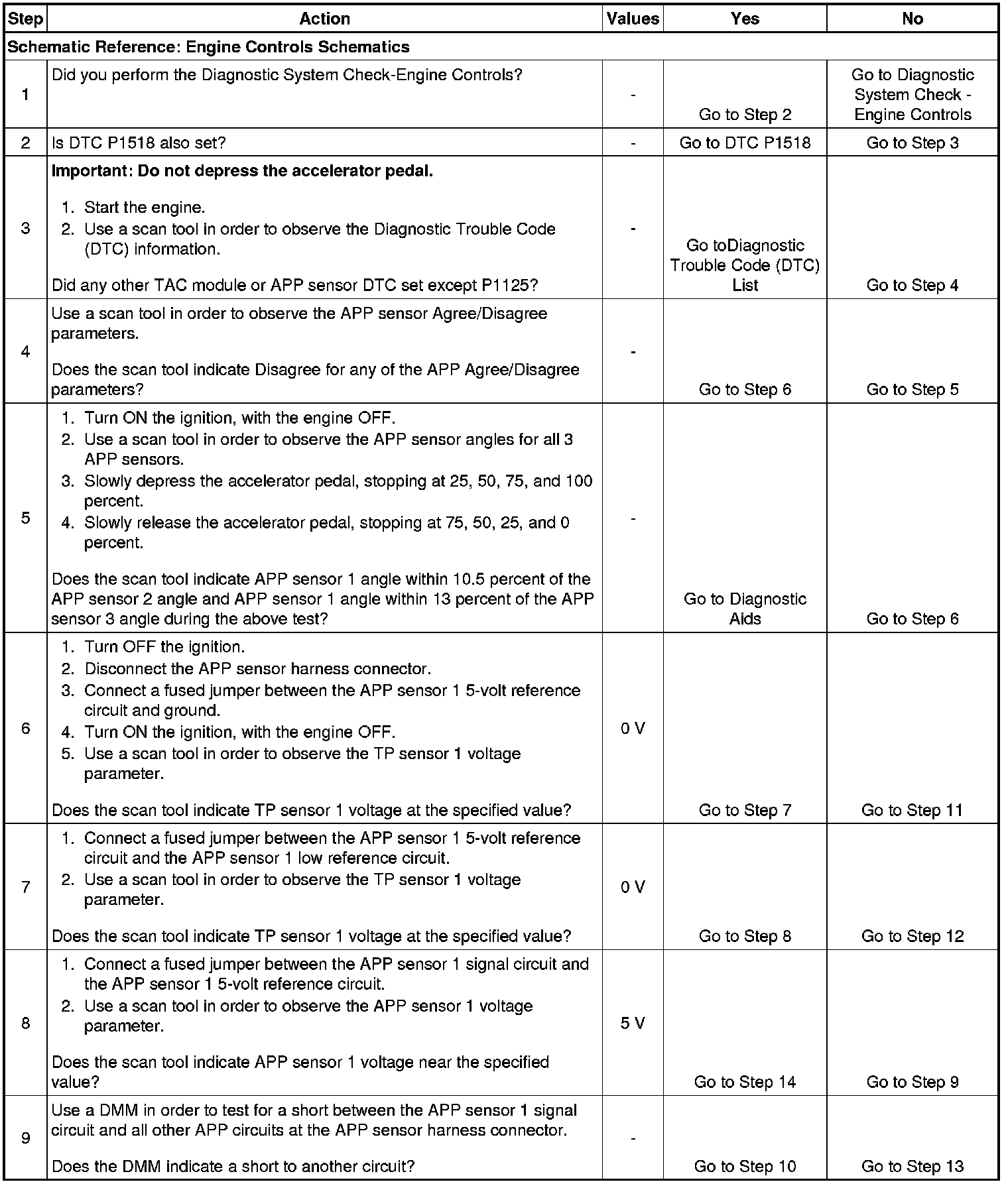 6. The APP sensor 1 shares a common 5-volt reference circuit with the TP sensor 1. Monitoring the TP sensor 1 voltage aids in diagnosing the APP sensor 5-volt reference and low reference circuits. If the scan tool displays near 0 volts then the circuits are OK.