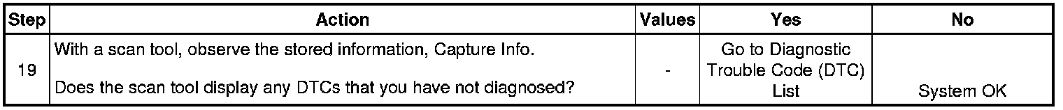19. When the TAC module detects a condition within the TAC system, more than one TAC system related DTC may set. This is due to the many redundant tests run continuously on this system. Locating and repairing one individual condition may correct more than one DTC. Disconnecting components during testing may set additional DTCs. Keep this in mind when reviewing the stored information, Capture Info.