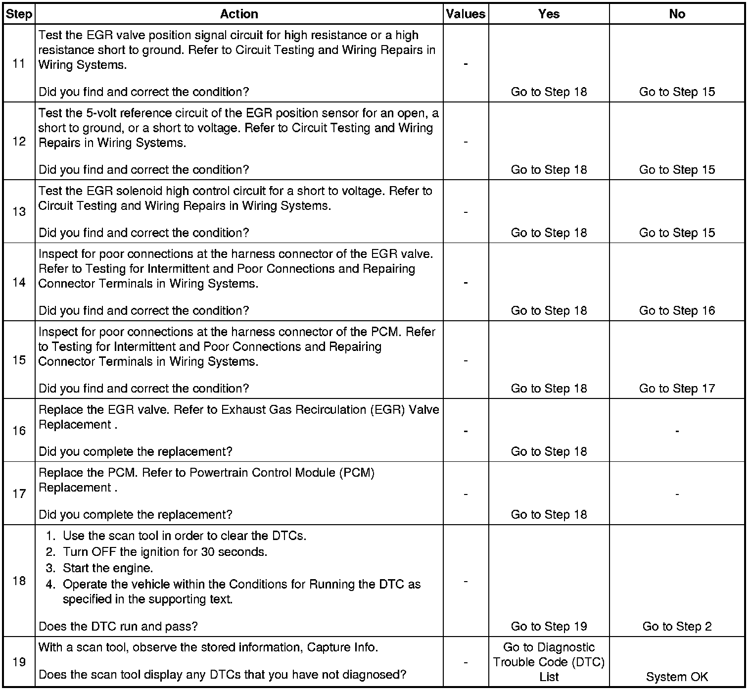 3. If DTC P1404 will only set under certain conditions, the malfunction may be intermittent. Refer to Diagnostic Aids. If an intermittent wiring problem is not present, test for a faulty connection at the PCM or the EGR valve. If the connections are OK and DTC P1404 continues to set, replace the EGR valve.