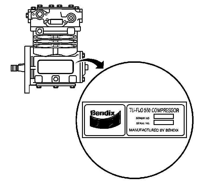 The model identification number is located on an identification plate. The identification plate is attached to the air compressor crankcase.