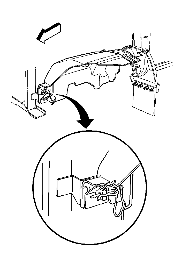 2. Install the clip retaining the front of the panel to the radiator support bracket.
