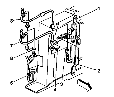 9. Remove the condenser tube (7) from the vehicle.