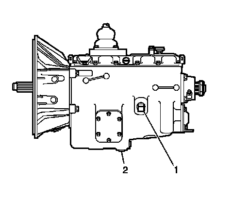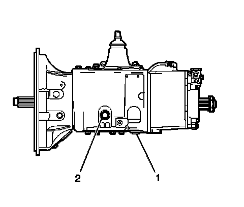 4. If equipped with the Eaton Fuller(R) RT series transmission, remove the oil fill plug (2).
