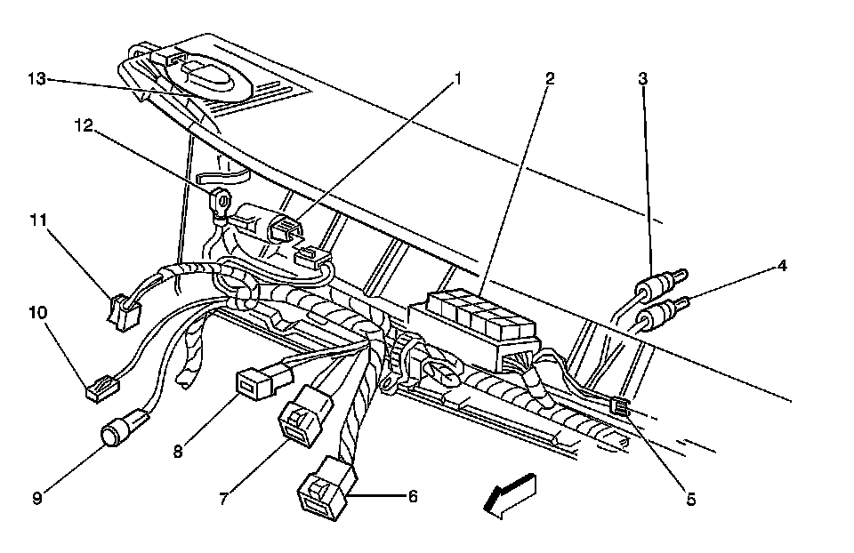 Instrument Panel Harness to IP Mounted Components, Right Front View