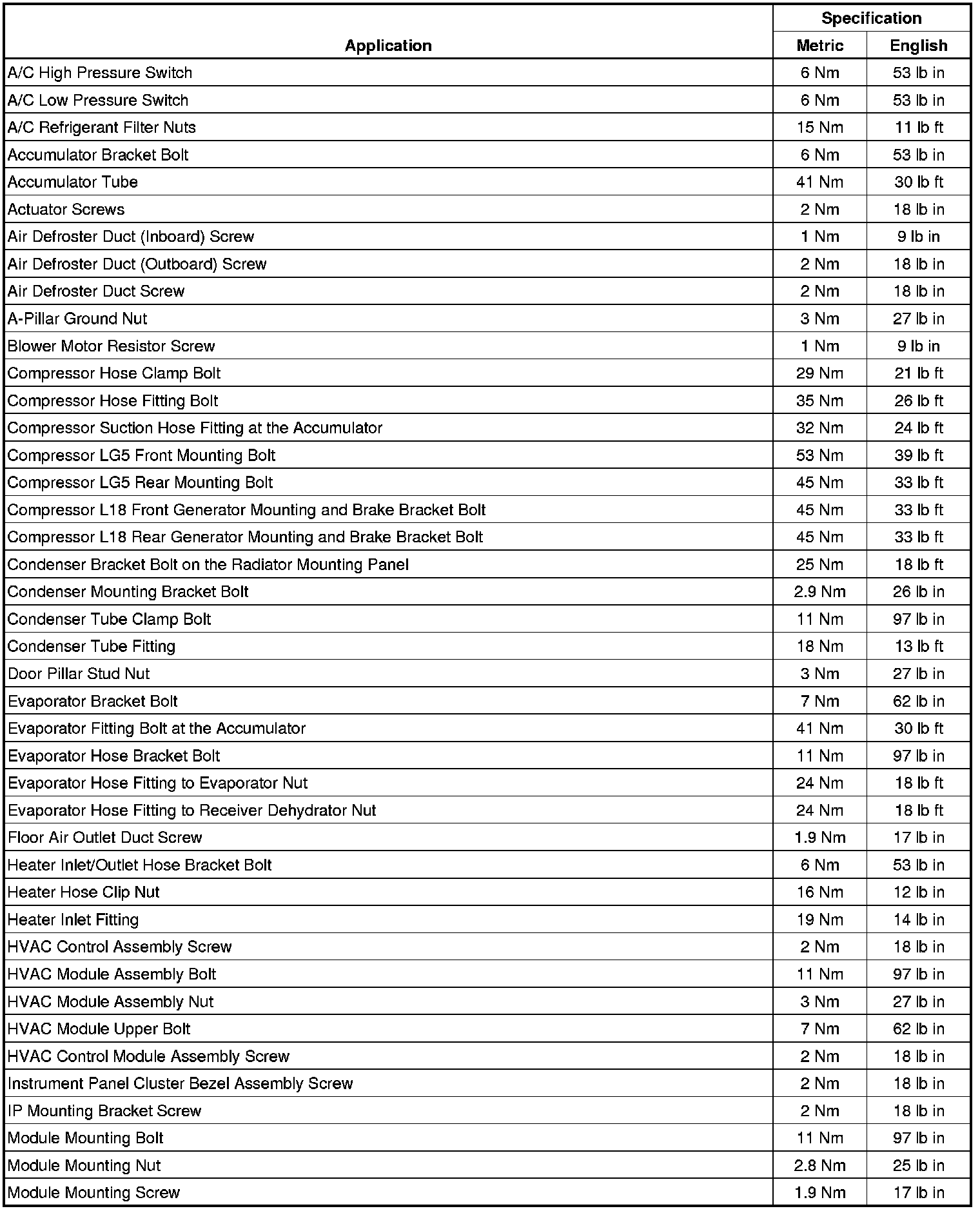 Fastener Tightening Specifications