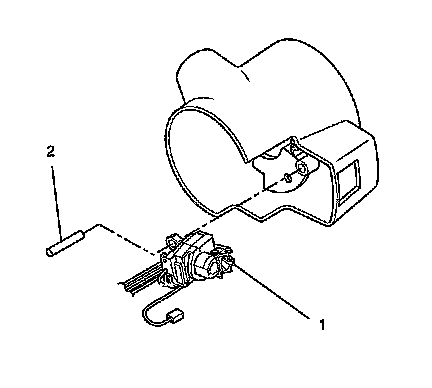 8. Remove the switch actuator pivot pin (2) from the windshield wiper and washer switch assembly (1).