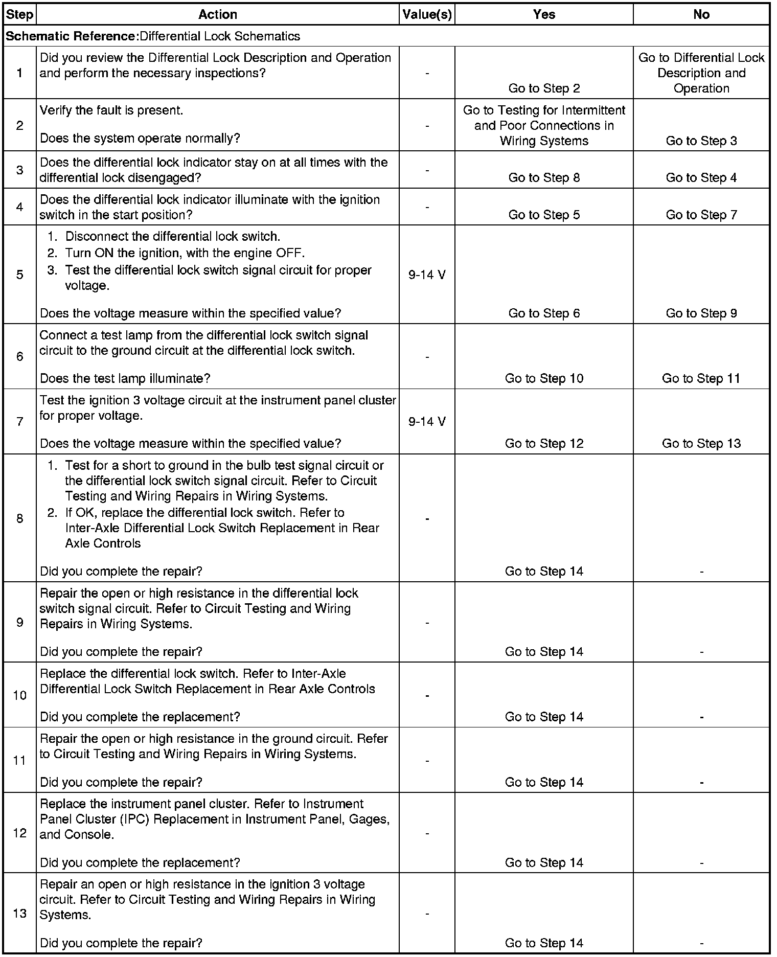 5. This step tests the differential lock switch signal for proper voltage.