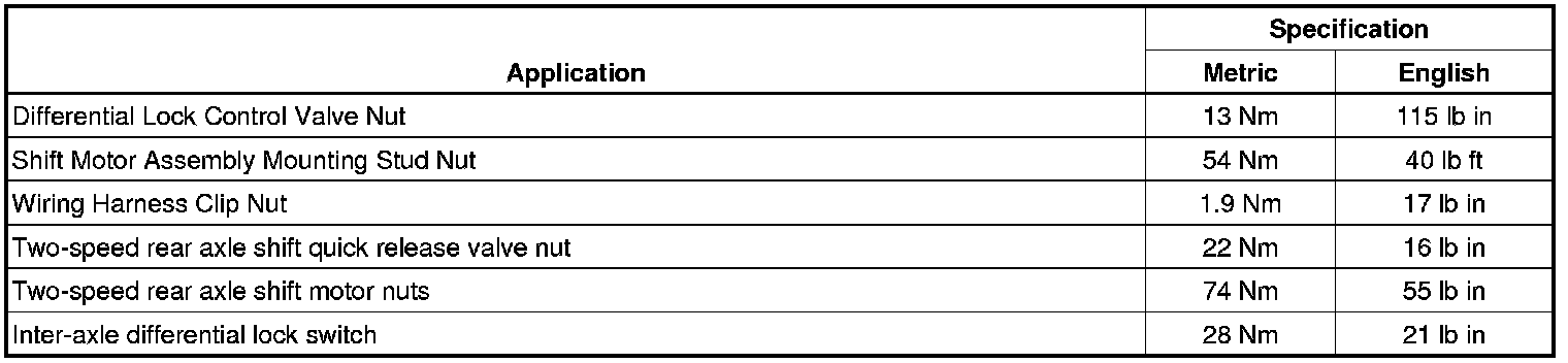 Differential Lock: Specifications