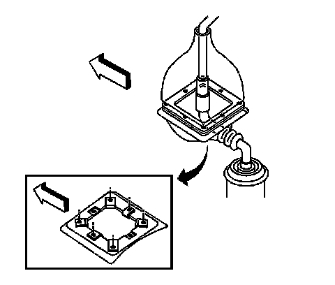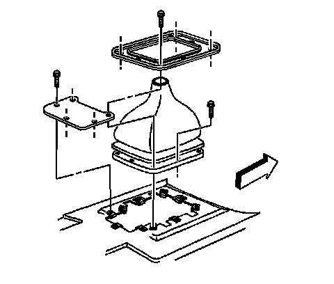 9. Remove the control lever boot retainer plate bolts and plate.