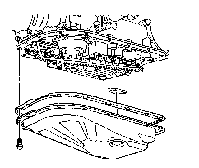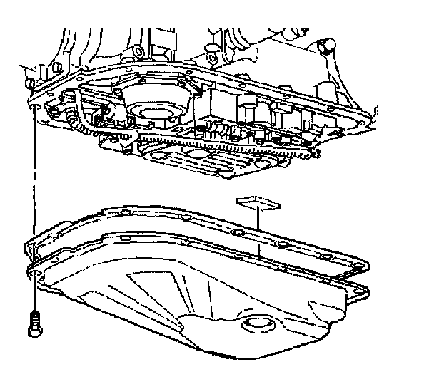 11. Clean the transmission case and the oil pan gasket surfaces with solvent.