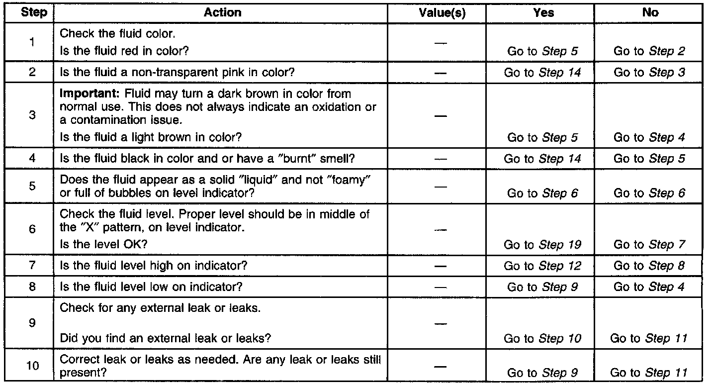 Transmission Fluid Checking ProcedureTest 1-10