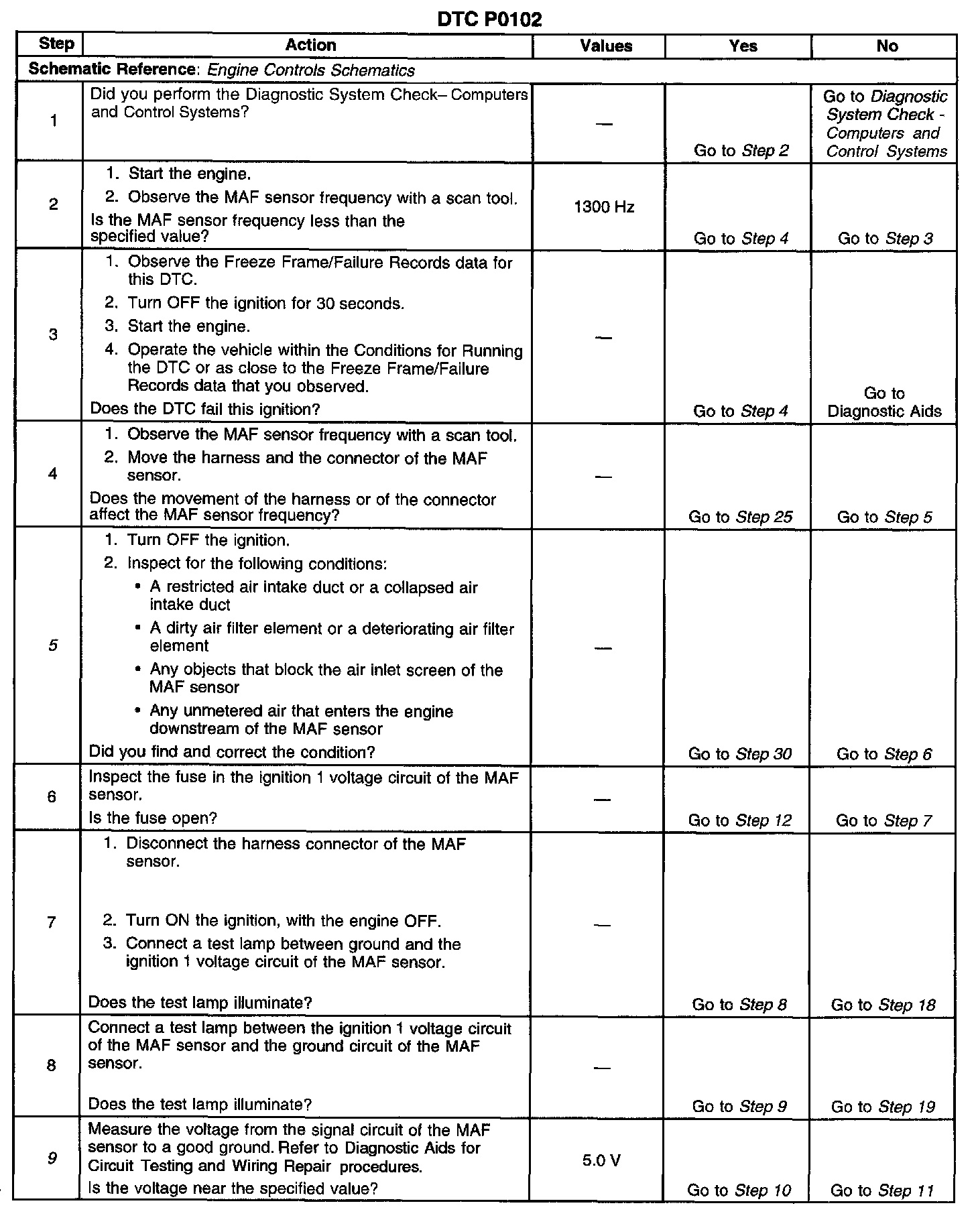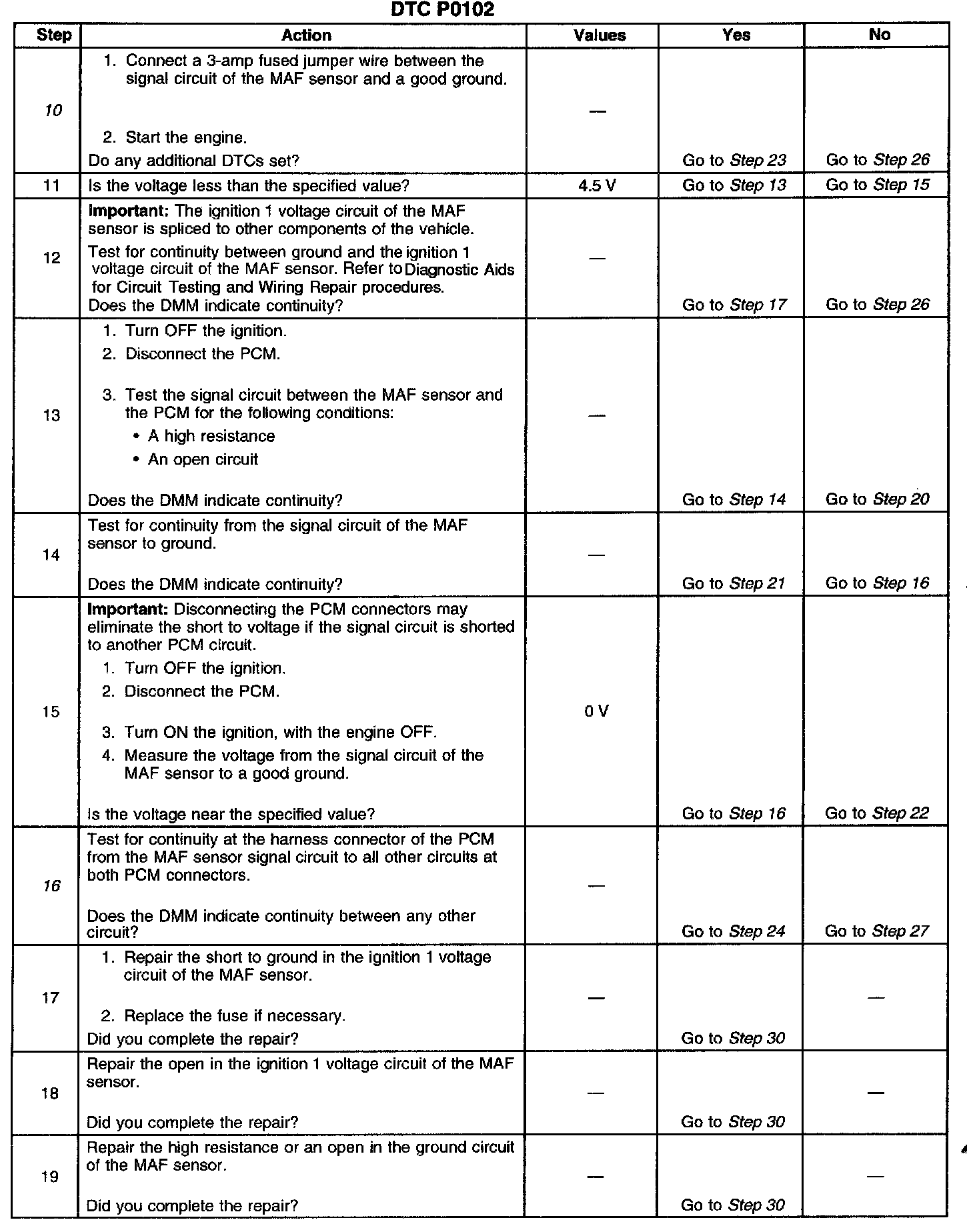 10. This step tests the signal circuit of the MAF sensor for a short to another 5-volt reference circuit.