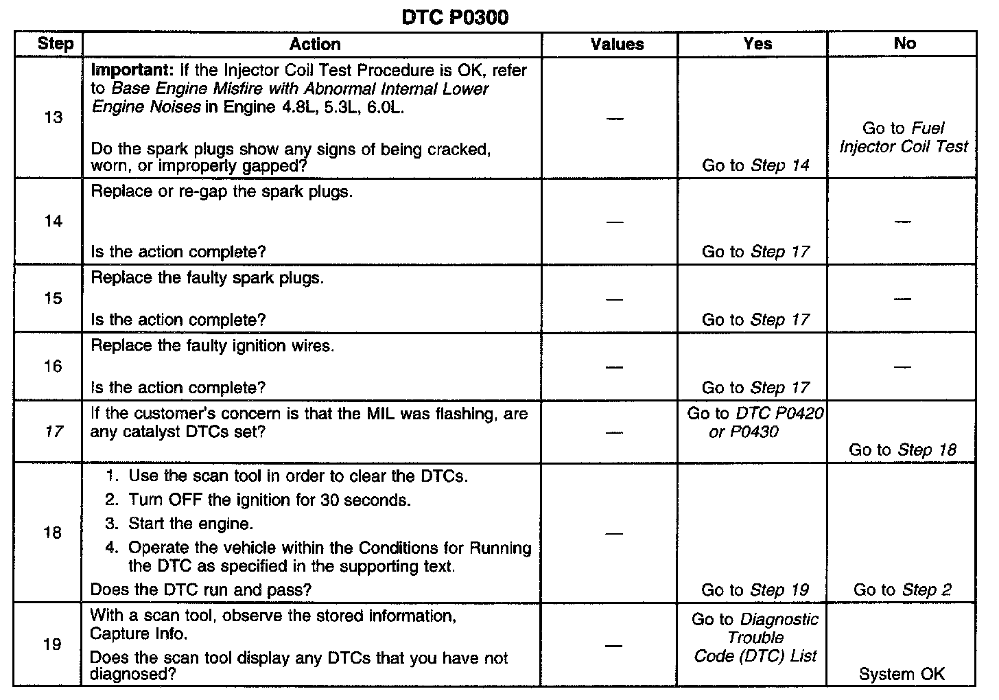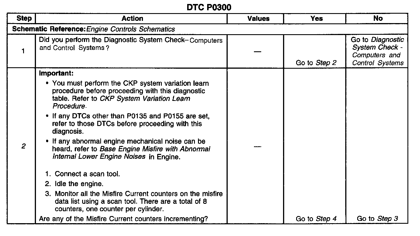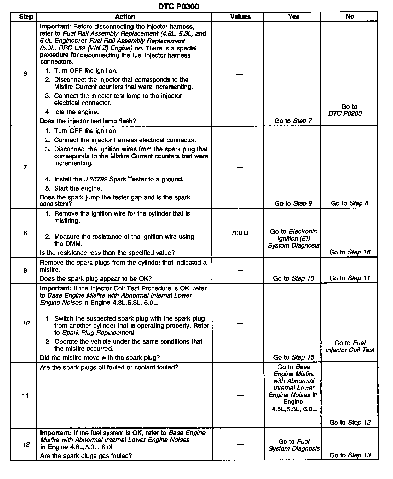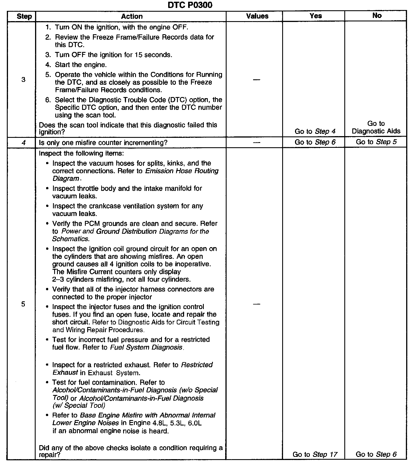 ^ A restricted fuel filter can cause sufficient misfire to set DTC P0300. Refer to Fuel System Diagnosis. Component Tests and General Diagnostics