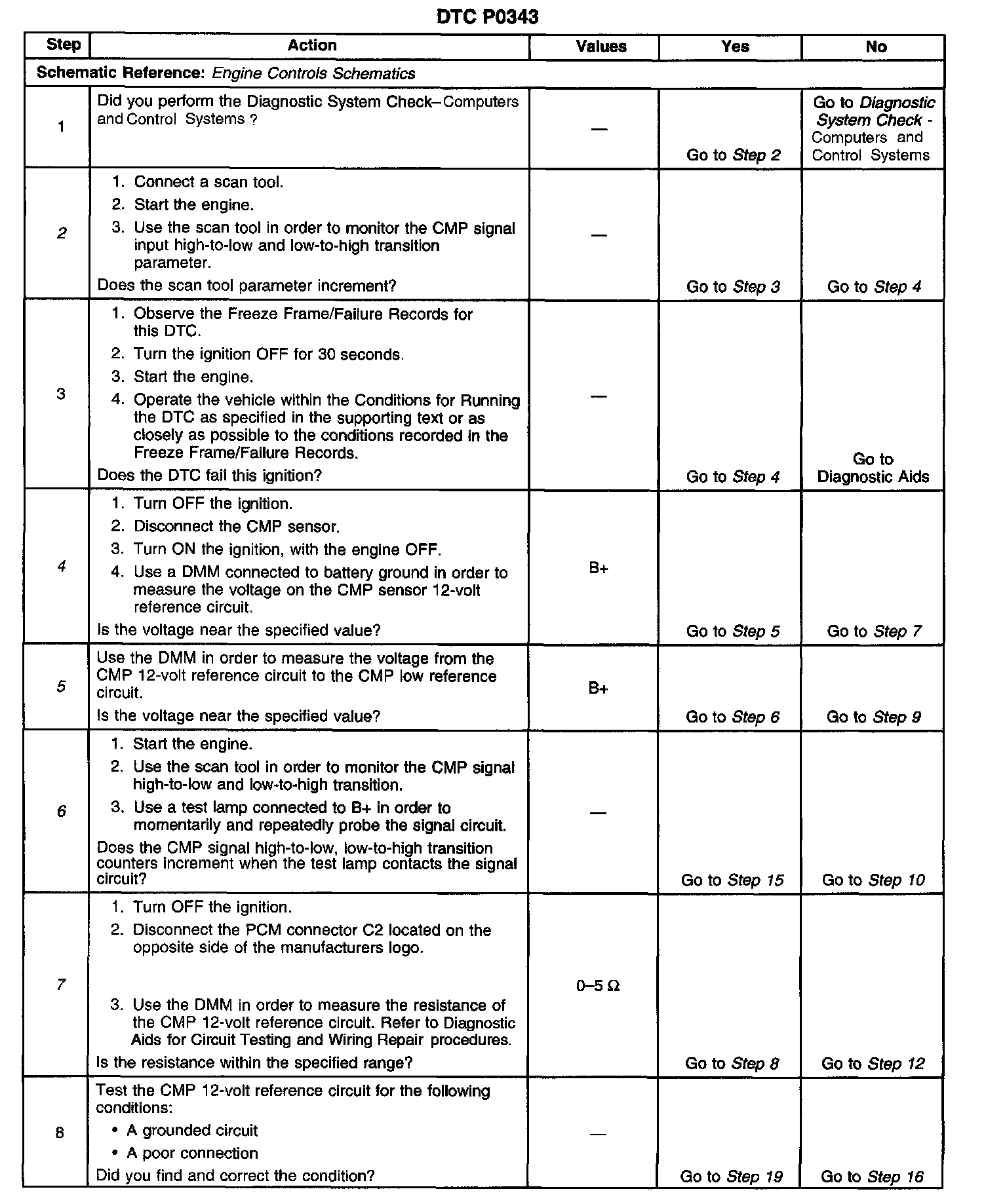 7. This step tests the resistance of the CMP sensor 12-volt reference circuit from the PCM to the CMP sensor.