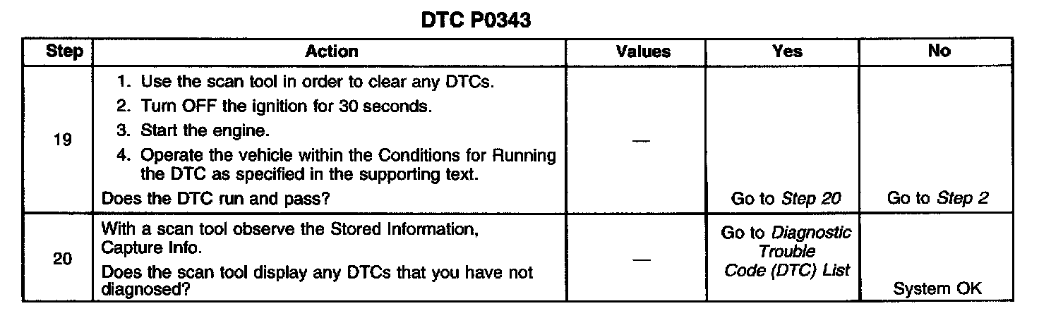 The CMP sensor determines whether a cylinder is on a firing stroke or on an exhaust stroke. As the camshaft rotates, the reluctor wheel interrupts a magnetic field produced by a magnet within the sensor. The sensors internal circuitry detects this and produces a signal which the PCM reads. The PCM uses this 1 X signal in combination with the crankshaft position (CKP) sensor 24 X signal in order to determine CKP and stroke. This diagnostic for the CMP sensor checks for a loss of CMP sensor signal.
