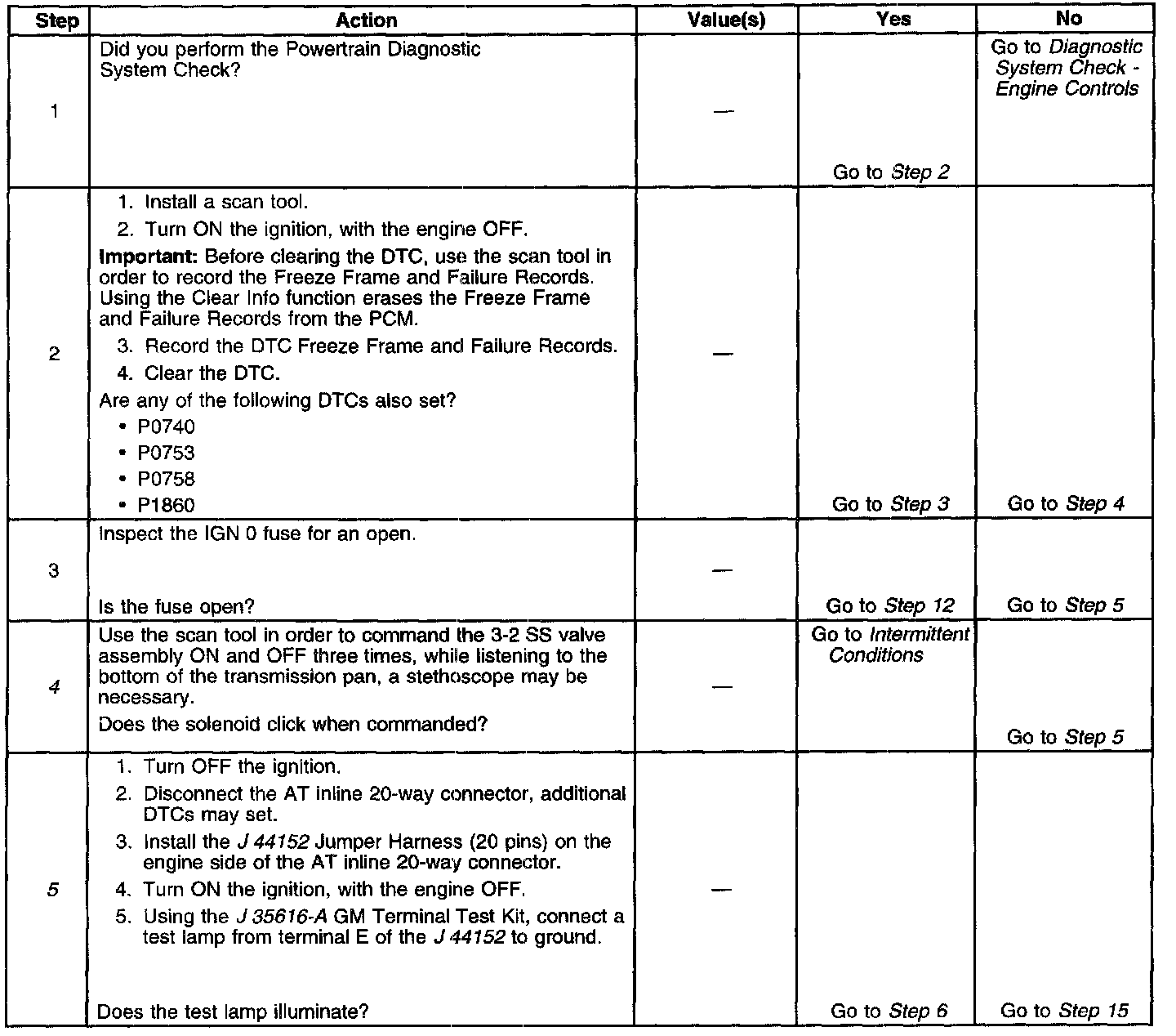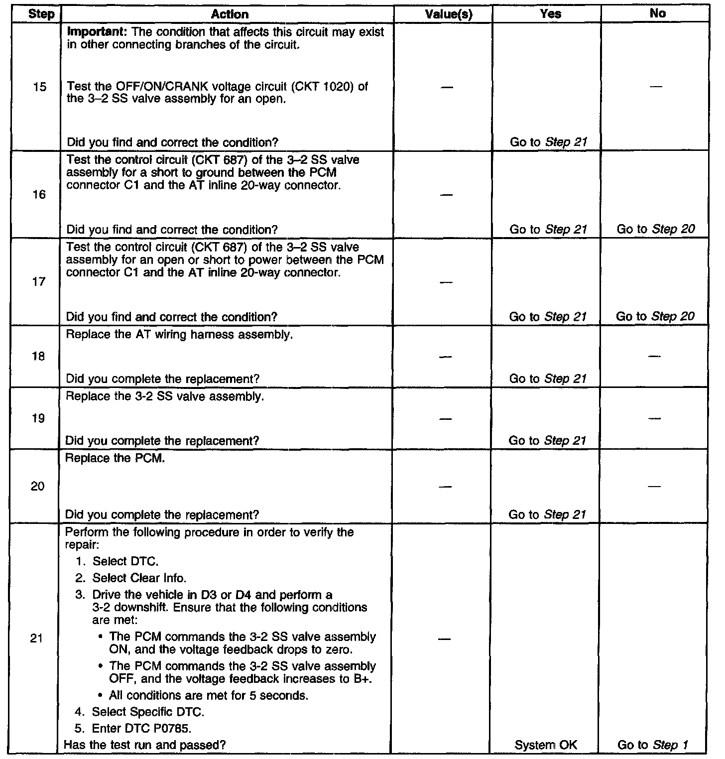 When the PCM detects a continuous open, short to ground or short to power in the 3-2 SS valve assembly circuit, then DTC P0785 sets. DTC P0785 is a type B DTC.