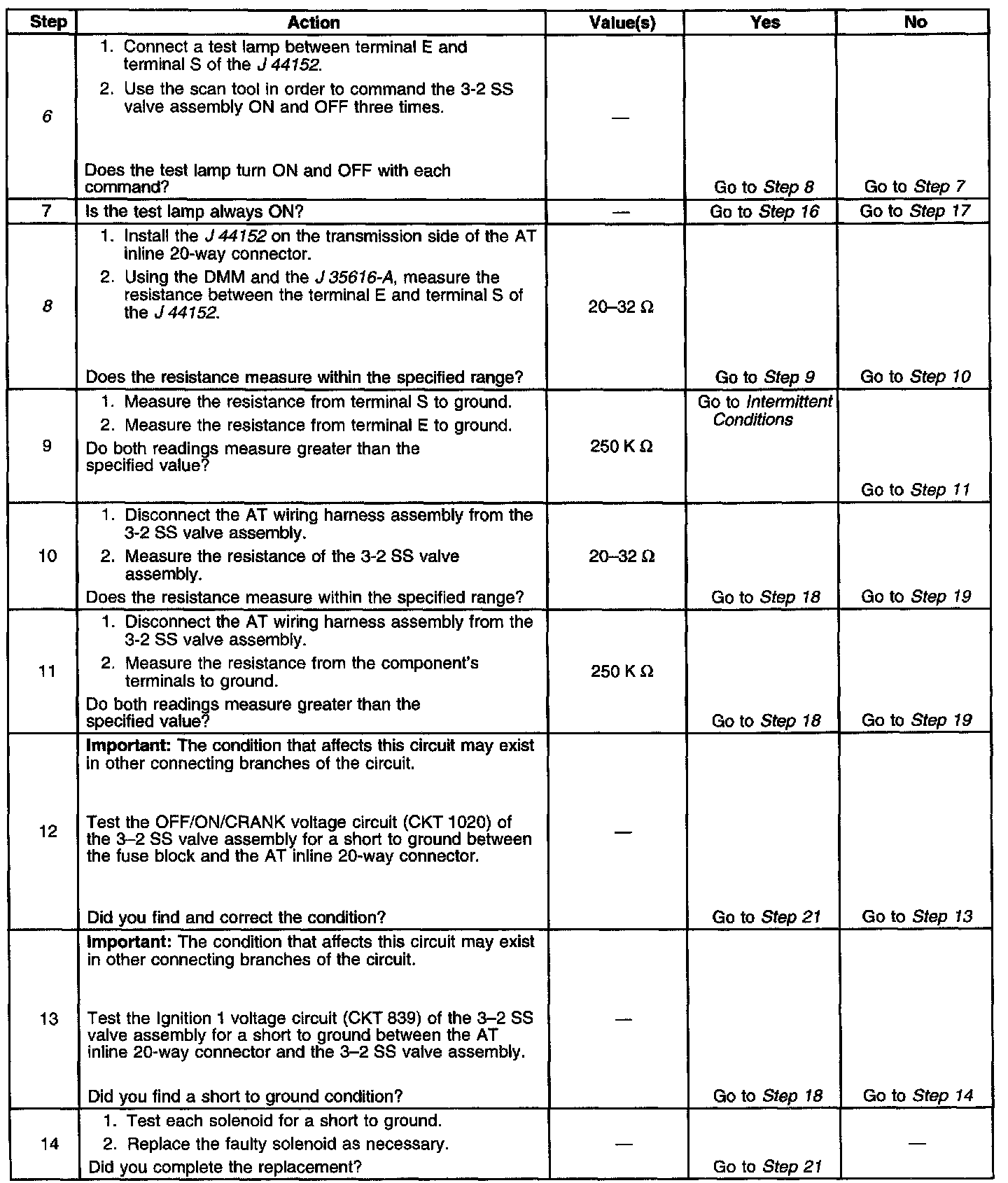 8. This step measures the resistance of the automatic transmission wiring harness assembly and the 3-2 SS valve assembly.