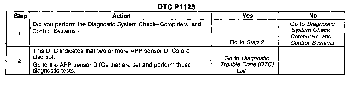 If only 1 APP sensor DTC is set, the redundant APP systems allow the TAC system to continue operating normally. This DTC sets if the powertrain control module (PCM) detects a condition with more than 1 APP sensor. One APP sensor DTC will not cause the Reduced Engine Power message to be displayed. 2 APP sensor DTCs for the same sensor also will not cause the Reduced Engine Power message to be displayed. However, if two or more DTCs are set involving more than 1 APP sensor, this DTC will set and the Reduced Engine Power message is displayed.