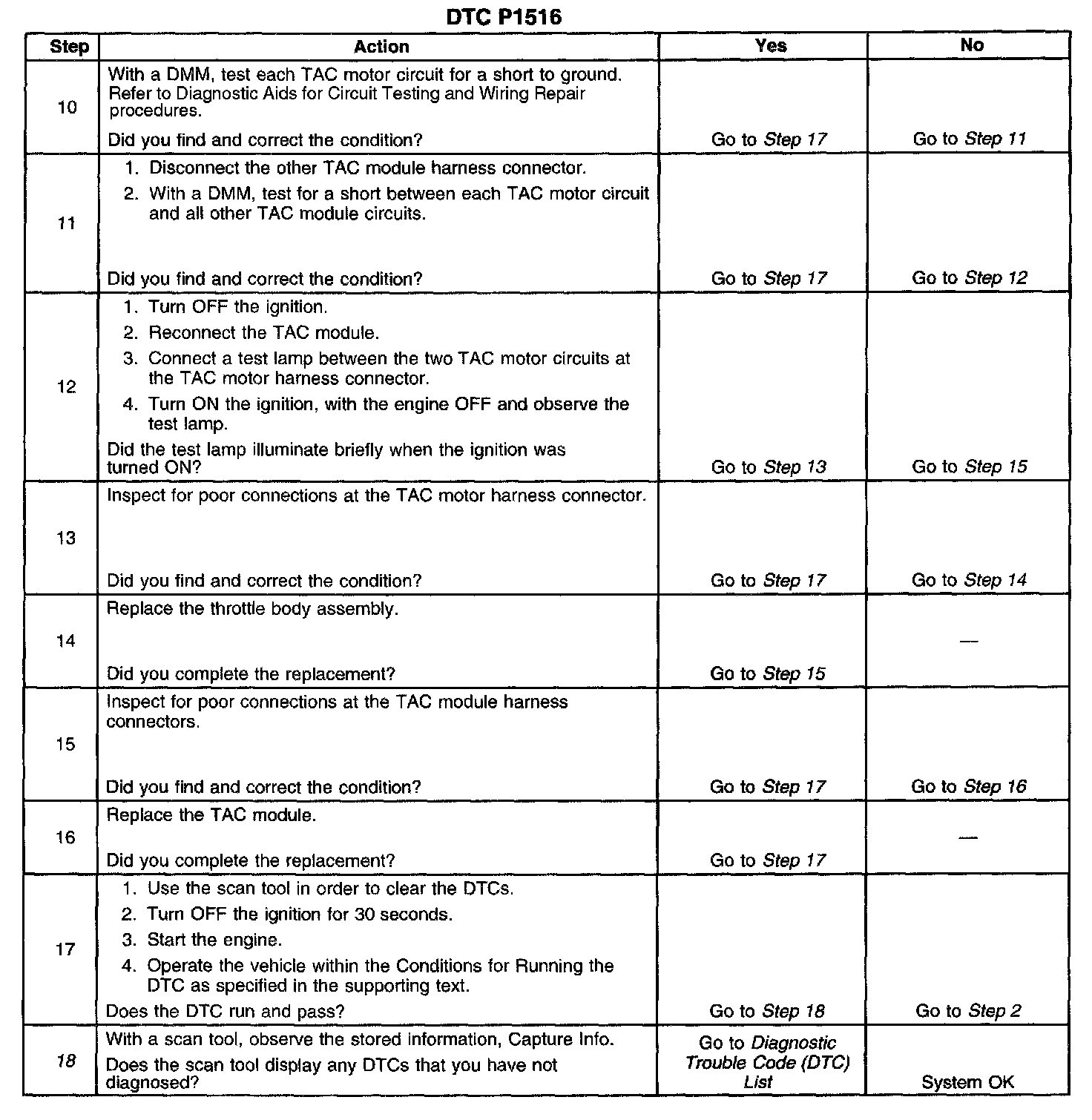^ When the TAC module detects a condition within the TAC system, more than 1 TAC system related DTC may set. This is due to the many redundant tests run continuously on this system. Locating and repairing an individual condition may correct more than 1 DTC. Disconnecting components during testing may set additional DTCs. Remember this if you review the stored information in Capture Info.